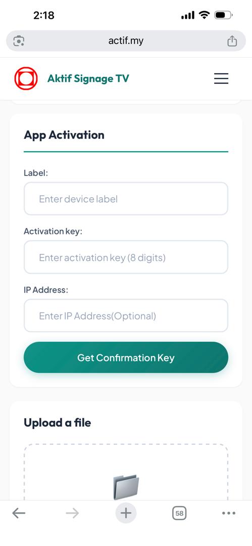 - Masukkan 8 digit Activation key yang terpapar di skrin app